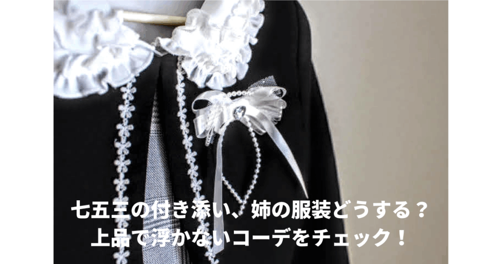 七五三はあくまで主役の子が中心。姉の服装は上品で控えめな色合いにするとバランスが取れます。